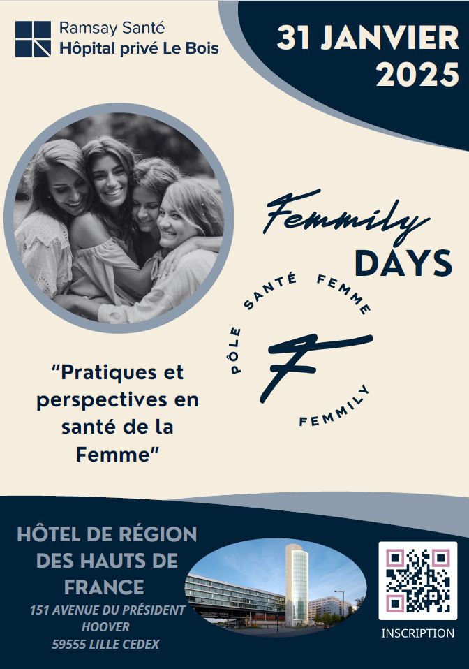 Découvrez le programme des Femmily Days, un congrès par le Pôle Santé Femme de l’Hôpital privé Le Bois. 👧